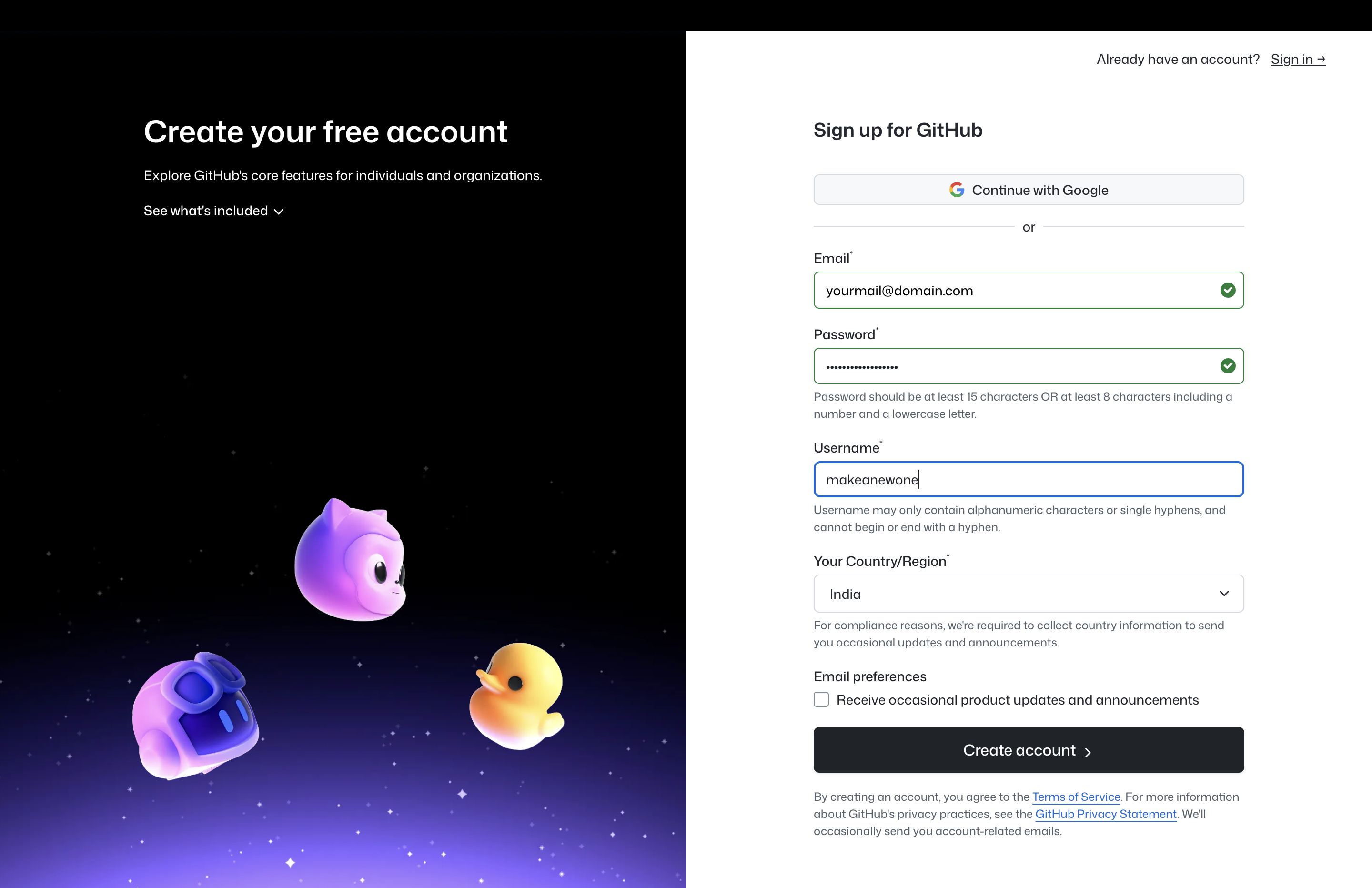 - Enter email, username, and password.