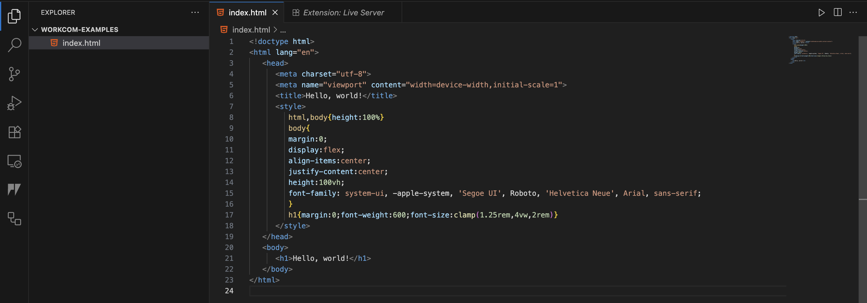 </html>- Use Explorer sidebar to manage files.